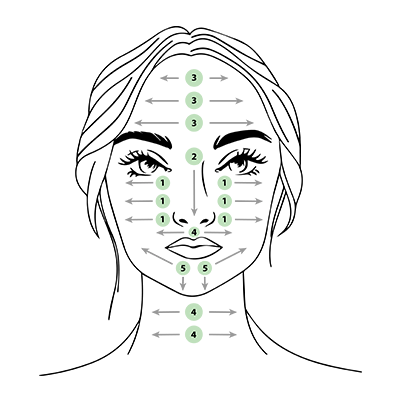 - Deslice las microagujas desde el centro hacia el exterior del rostro y cuello